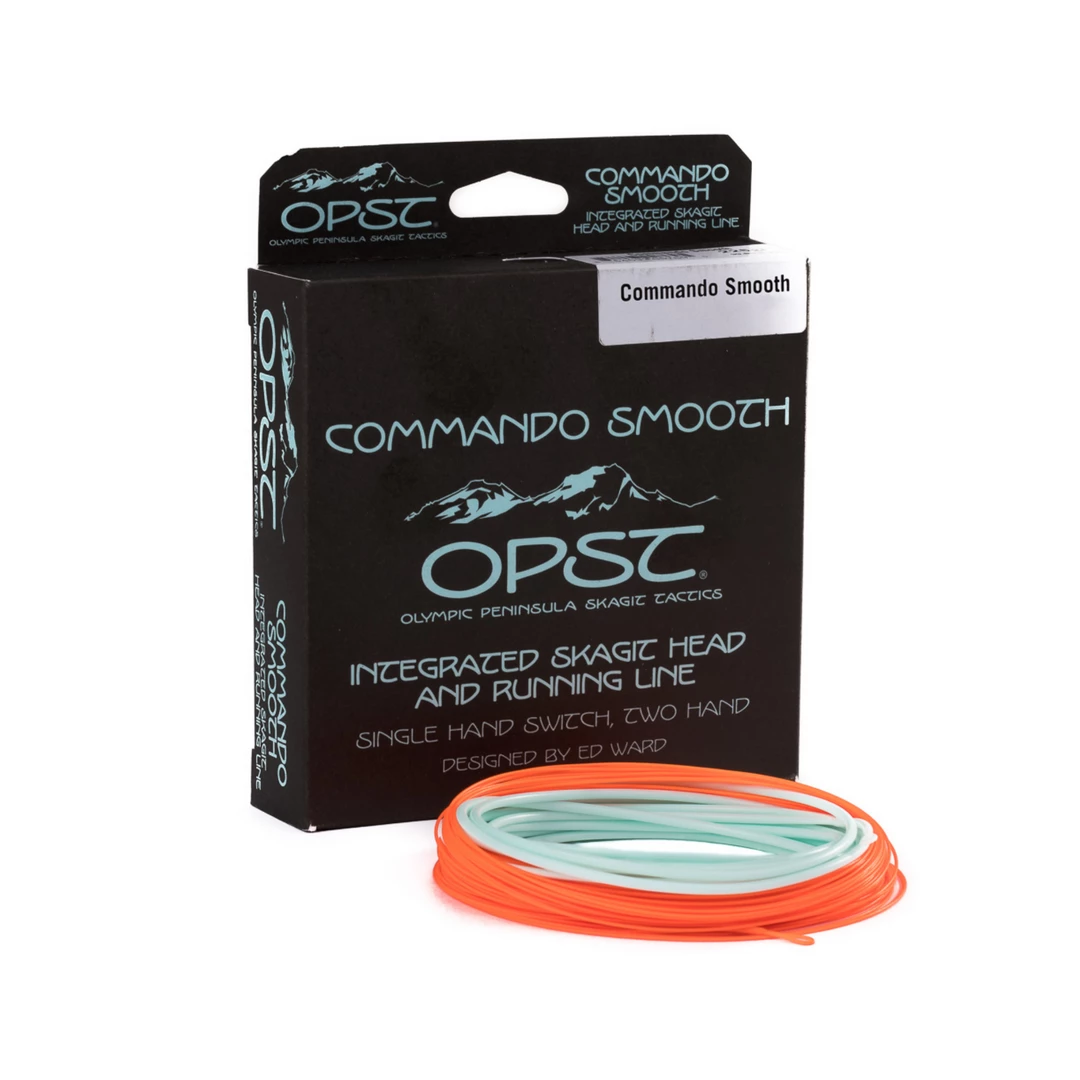 The original OPST Commando Head changed the game for trout spey and single hand Skagit tactics. But for streamer, dry fly, and nymph fishing, where you often fish at close range and strip flies right up to the rod tip, we knew we could improve it. Enter the Commando Smooth—a Commando Head and a thin, slick coated running line integrated into one with a smooth, gradual taper. No longer will you feel a bump as the running line/Commando Head junction enters the guides. You won’t feel anything at all, except a jarring strike as a fish attacks your streamer. The Commando Smooth is ideal for the trout and bass world, or any other situation where you want to fish your fly all the way in. These are typically used with our Micro Sink and Floating Tips, from 5 to 12 feet long: Perfect for single hand, trout spey, and micro skagit rods. The running line is orange to provide a nice contrast against the Sauk Blue head. If you are looking for a line that can do almost anything, experience the Commando Smooth. It’s just like the wildly popular Commando Head. Only smoother.